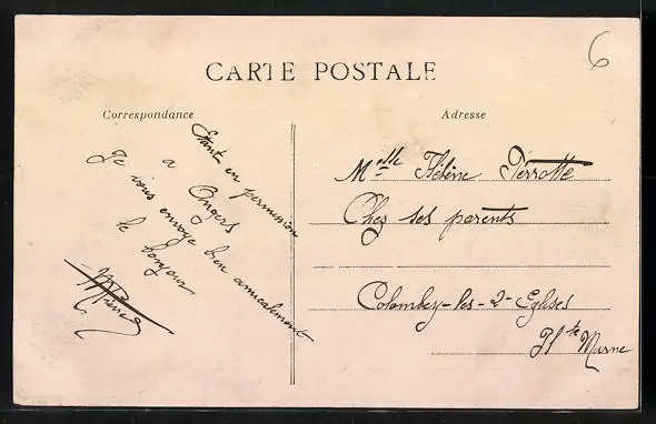 Personenbezogene Daten auf der Rückseite der Karte wurden durch blauen Textmarker unkenntlich gemacht. Die blauen Stellen sind auf die Vorderseite durchgeweicht und wirken sich negativ auf das Postkartenfoto aus