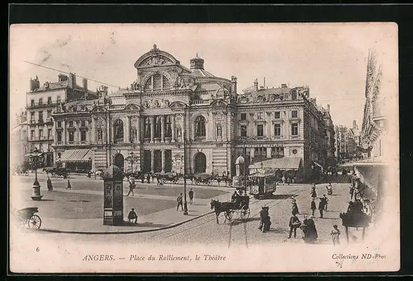 AK Angers, Place du Ralliement et Tramway, Strassenbahn