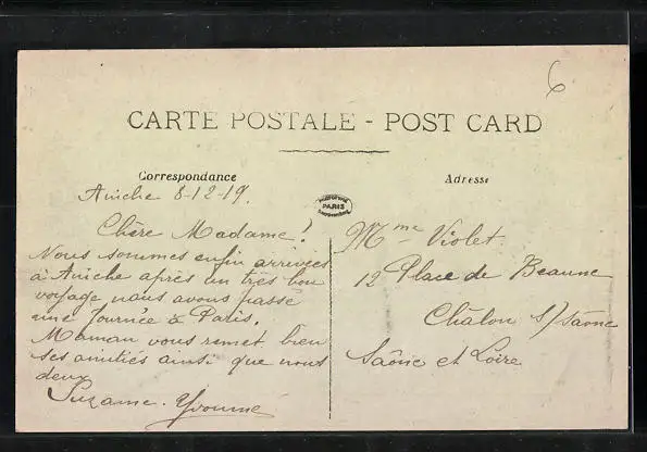 Personenbezogene Daten auf der Rückseite der Karte wurden durch blauen Textmarker unkenntlich gemacht. Die blauen Stellen sind auf die Vorderseite durchgeweicht und wirken sich negativ auf das Postkartenfoto aus