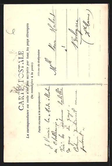Personenbezogene Daten auf der Rückseite der Karte wurden durch blauen Textmarker unkenntlich gemacht. Die blauen Stellen sind auf die Vorderseite durchgeweicht und wirken sich negativ auf das Postkartenfoto aus