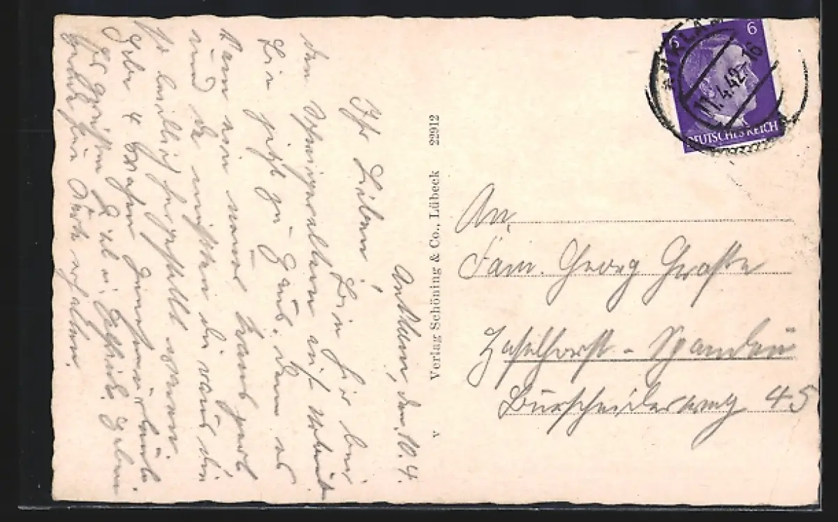 alte Ansichtskarte, gelaufen 1942, Stempelspur, guter Zustand