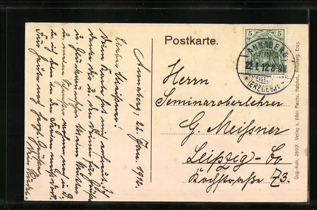 alte Ansichtskarte, gelaufen 1912, Stempelspur, guter Zustand