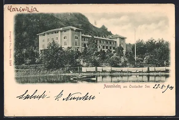 AK Annenheim a. Ossiacher See, Ruderpartie, Gebäudeansicht