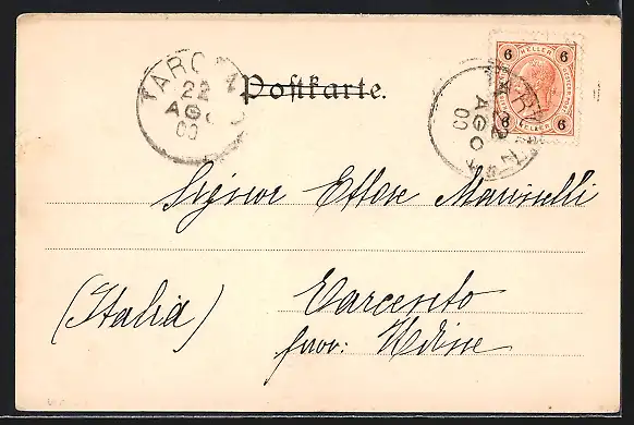 alte Ansichtskarte, gelaufen 1900, guter Zustand