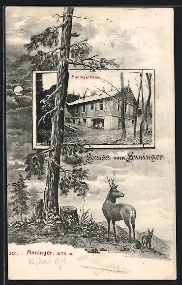 AK Anninger-Haus auf dem Anninger mit Rehen