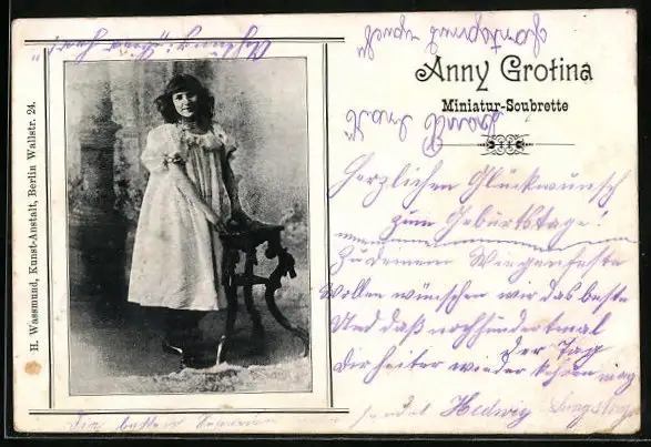 AK Anny Grotina, Miniatur-Soubrette - Portrait im Puffärmelkleid