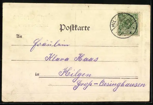 alte Ansichtskarte, gelaufen 1900, Eckknick unten re., guter Zustand