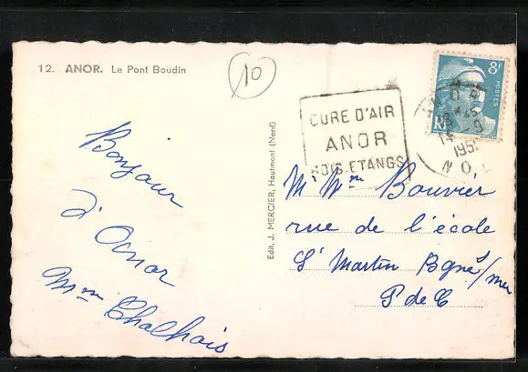 Personenbezogene Daten auf der Rückseite der Karte wurden durch blauen Textmarker unkenntlich gemacht. Die blauen Stellen sind auf die Vorderseite durchgeweicht und wirken sich negativ auf das Postkartenfoto aus