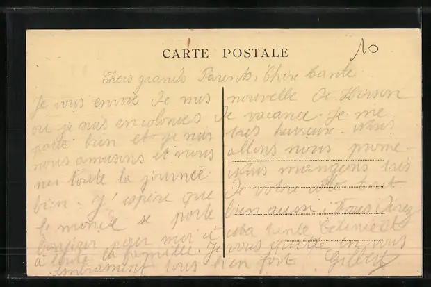 Personenbezogene Daten auf der Rückseite der Karte wurden durch blauen Textmarker unkenntlich gemacht. Die blauen Stellen sind auf die Vorderseite durchgeweicht und wirken sich negativ auf das Postkartenfoto aus