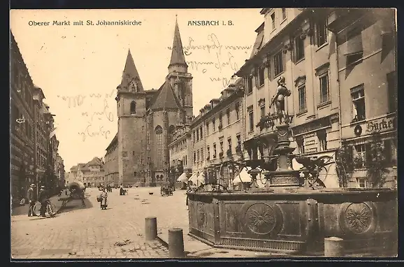 AK Ansbach / Bayern, Oberer Markt mit Johanneskirche