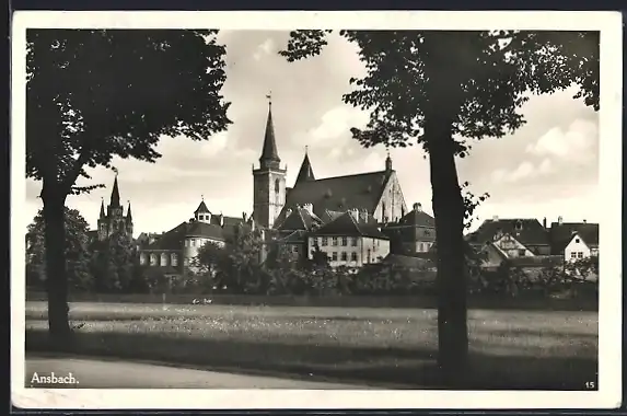 AK Ansbach / Bayern, Ortspartie mit Kirche