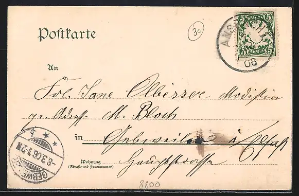 alte Ansichtskarte, gelaufen 1906, Eckknick re. unten, guter Zustand