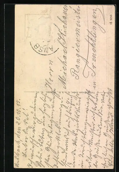 alte Ansichtskarte, gelaufen 1915, Briefmarke entfernt, rückseitig Oberflächenschaden, guter Zustand