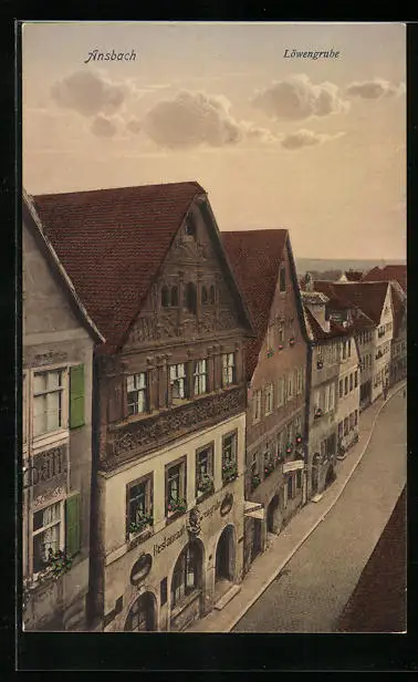 AK Ansbach, Gasthaus Löwengrube aus der Vogelschau