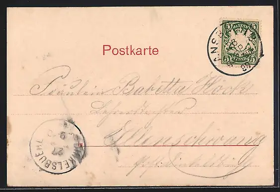 alte Ansichtskarte, gelaufen 1899, Eckknick re. unten, guter Zustand