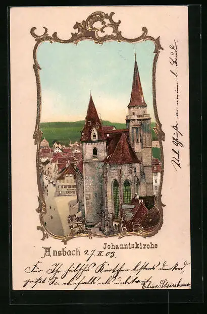 AK Ansbach, Johanniskirche mit Strassenpartie