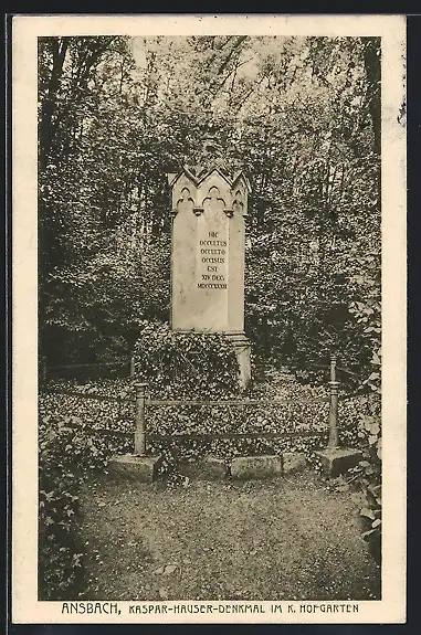 AK Ansbach, Kaspar-Hauser-Denkmal im K. Hofgarten