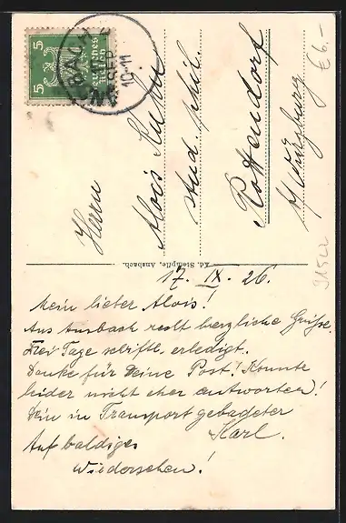 alte Ansichtskarte, gelaufen 1926, guter Zustand