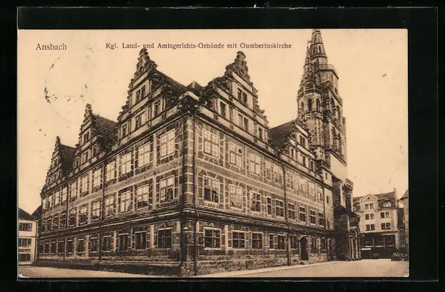 AK Ansbach, Kgl. Land- und Amtsgerichts-Gebäude mit Gumbertuskirche