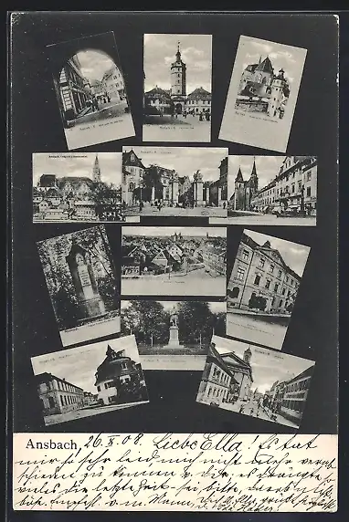 AK Ansbach, Landgericht und Gumbertuskirche, Graf von Platen-Denkmal, Karlstrasse