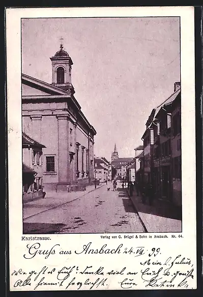 AK Ansbach / Mfr., Karlstrasse mit Kirche