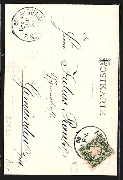 alte Ansichtskarte, gelaufen 1899, Eckknick unten li., guter Zustand