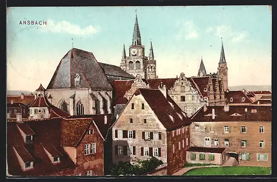 AK Ansbach / Mfr., Teilansicht mit Kirche