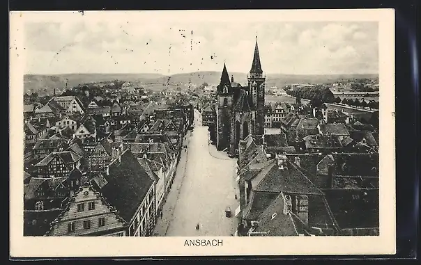 AK Ansbach / Mfr., Teilansicht mit der Kirche aus der Vogelschau
