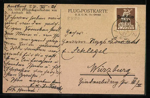 AK Ansbach / Mfr., Totalansicht, Flugzeugaufnahme