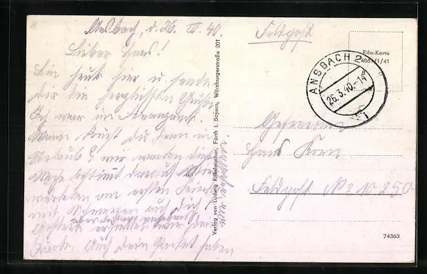 alte Ansichtskarte, gelaufen 1940 als Feldpost, guter Zustand