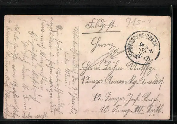gelaufen 1916 als Feldpost, Eckknick unten li.