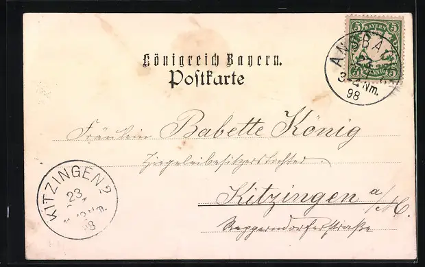 alte Ansichtskarte, gelaufen 1898, guter Zustand