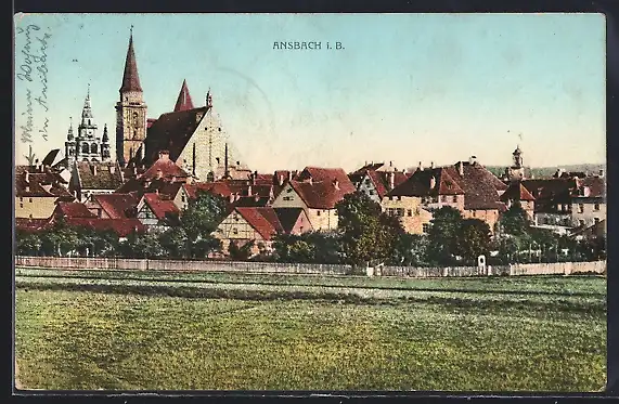 AK Ansbach i. B., Ortsansicht mit Wiese