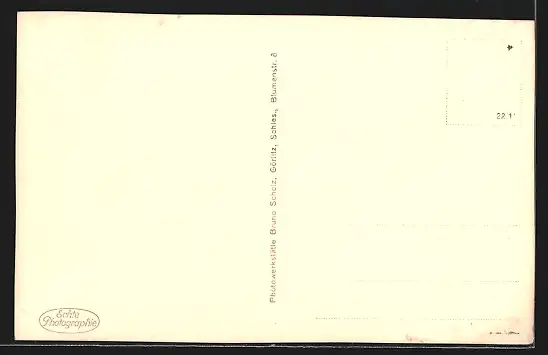 Personenbezogene Daten auf der Rückseite der Karte wurden durch blauen Textmarker unkenntlich gemacht. Die blauen Stellen sind auf die Vorderseite durchgeweicht und wirken sich negativ auf das Postkartenfoto aus