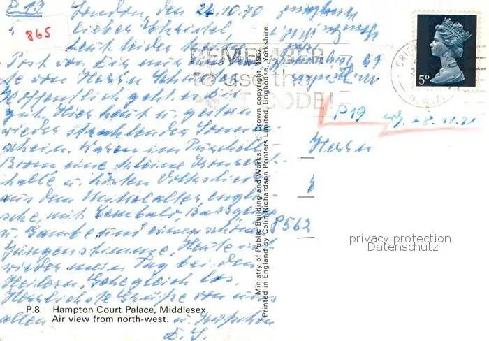 73796728 Middlesex Hampton Court Palace Air view postalisch gelaufen 1970 Erhaltung siehe scans [WerneD78] [WernPID7 ]