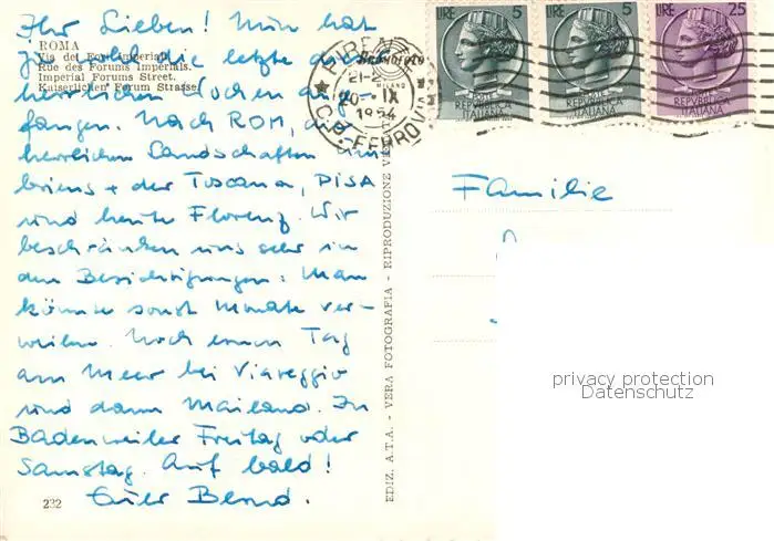 73802583 Roma__Rom_IT Via dei Fiori Imperiali postalisch gelaufen 1954 Erhaltung siehe scans [WerneD78] [WernPID7 ]
