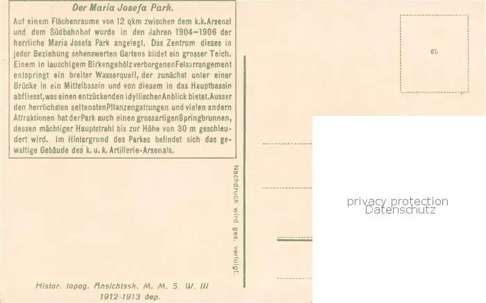 73806046 Wien_AT Maria Josefa Park postalisch nicht gelaufen bis 1920 Erhaltung siehe scans [FriedD77] [Frierer ]