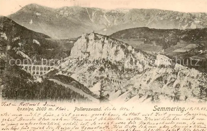 73806459 Semmering_Niederoesterreich Raxalpe Polleroswand Semmering postalisch gelaufen 1903 Erhaltung siehe scans [WerneD78] [WernPID7 ]