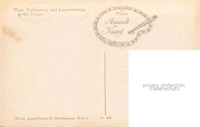 73806514 Kahlenberg__Wien_AT mit Leopoldsberg und Donaupartie Aquarell postalisch nicht gelaufen 1921-1965 Erhaltung siehe scans [WerneD78] [WernPID7 ]