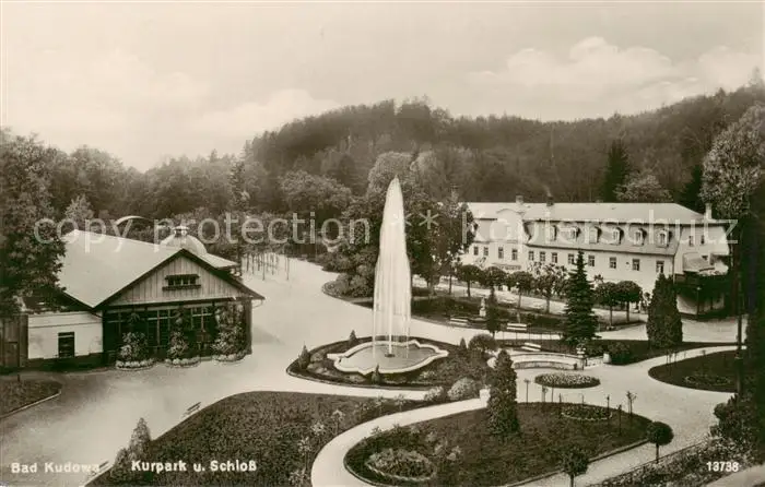 AK / Ansichtskarte 73806701 Bad_Kudowa_Kudowa-Zdroj_Niederschlesien_PL Kurpark und Schloss Springbrunnen