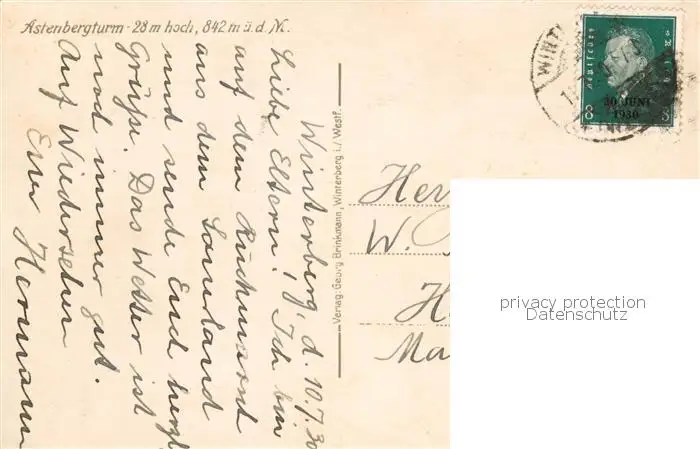 73809352 Astenberg_Schmallenberg Astenbergturm postalisch gelaufen 1930 Erhaltung siehe scans [WerneD78] [WernPID7 ]