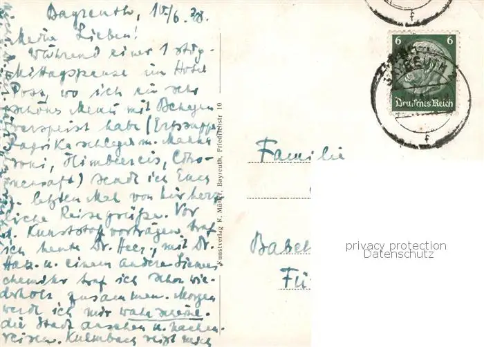 73809494 Bayreuth Panorama Bayreuth postalisch gelaufen 1938 Erhaltung siehe scans [FriedD77] [Frierer ]