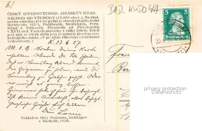 73810012 Bad_Kudowa_Kudowa-Zdroj_Niederschlesien_PL Panorama postalisch gelaufen 1927 Erhaltung siehe scans [WerneD78] [WernPID7 ]