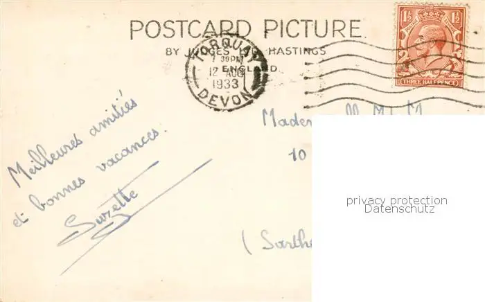 73812135 Torquay Judges Torquay postalisch gelaufen 1933 Erhaltung siehe scans [FriedD77] [Frierer ]