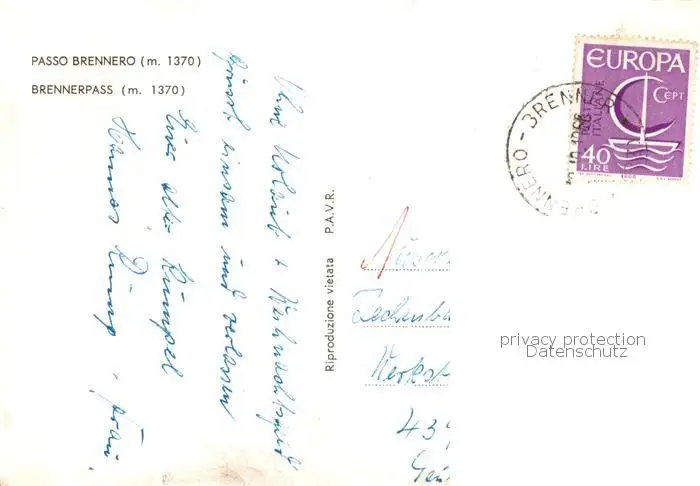73813659 Brennerpass Alpenpass Brennerpass postalisch gelaufen 1966 Erhaltung siehe scans [FriedD77] [Frierer ]