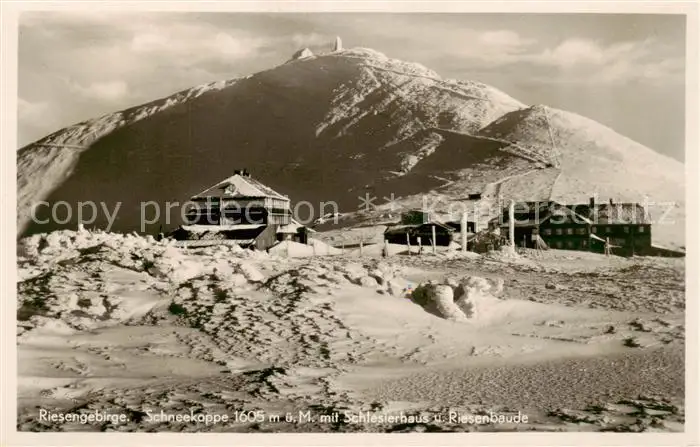 AK / Ansichtskarte 73817571 Riesengebirge_Schlesischer_Teil Schneekoppe mit Schlesierhaus und Riesenbaude