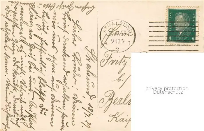 73820908 Stralsund Hindenburg Ufer postalisch gelaufen 1929 Erhaltung siehe scans [WerneD78] [WernPID7 ]