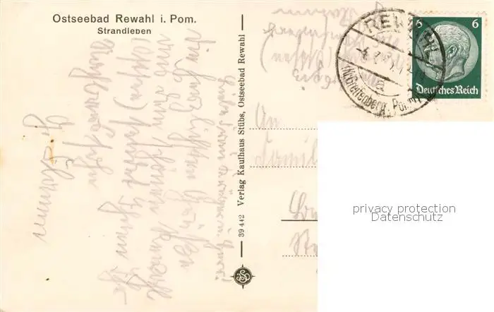 73822433 Rewahl_Rewal_Ostsee_PL Strandleben postalisch gelaufen 1935 Erhaltung siehe scans [WerneD78] [WernPID7 ]