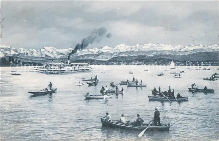 AK / Ansichtskarte 73825866 Dampfer_Seitenrad Zuerichsee und die Alpen