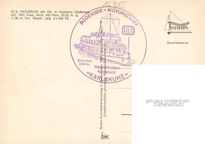73826501 Dampfer_Binnenschifffahrt MS Karlsruhe Konstanz Bodensee postalisch nicht gelaufen nach 1965 Erhaltung siehe scans [IrynaD87] [Iryn PID ]